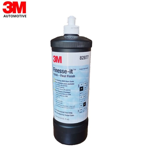 3M™ Finesse-it™ Final Finish is part of a line of specially designed compounds and polishes to be used on OEM and baked refinish paints to remove sand scratches or to remove swirl marks from previously compounded areas and is designed to produce best results when used with an air or electric buffer equipped with our 3M™ Finesse-it™ buffing pads.
